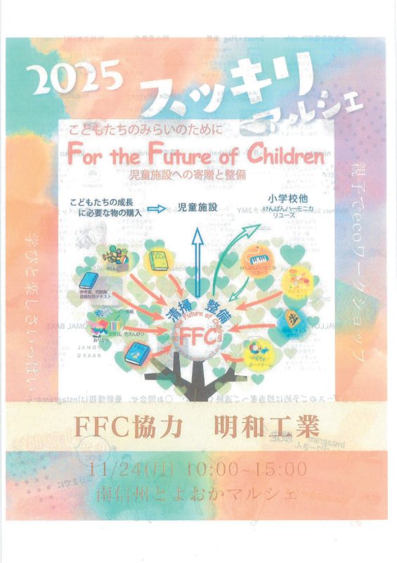 来たる2025年11月4日(月)10:00~15:00の間に『南信州とよおかマルシェ』にて催されます『2025スッキリマルシェ』の中で、弊社FFC活動の一番最初の活動である寄贈品回収が行われます。