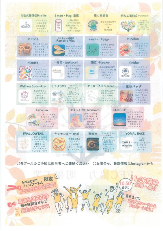 弊社のFFC活動に共感されました『服の交換会』様が主になって回収を行って頂けます。当日は勤労感謝の日の振替休日ですので、お家にある使わなくなった楽器・本・文具・玩具等をお持ちになって覗いてみたらいかがでしょう?『服の交換会』様の他にも沢山の出展があるようです。お時間のある方は是非ご来店願います。